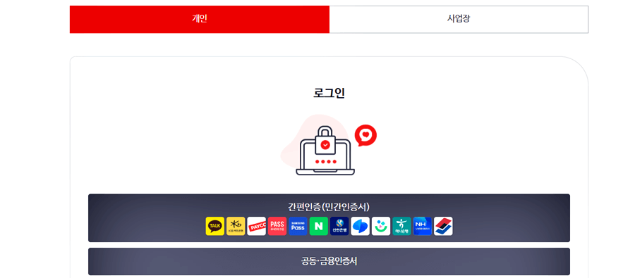 3. 공인인증 또는 간편 인증으로 본인인증을 진행합니다.