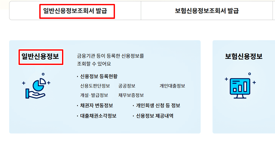 2. 금융기관 등이 등록한 일반 신용정보를 조회할 수 있으며 조회서를 발급받을 수 도 있습니다.
