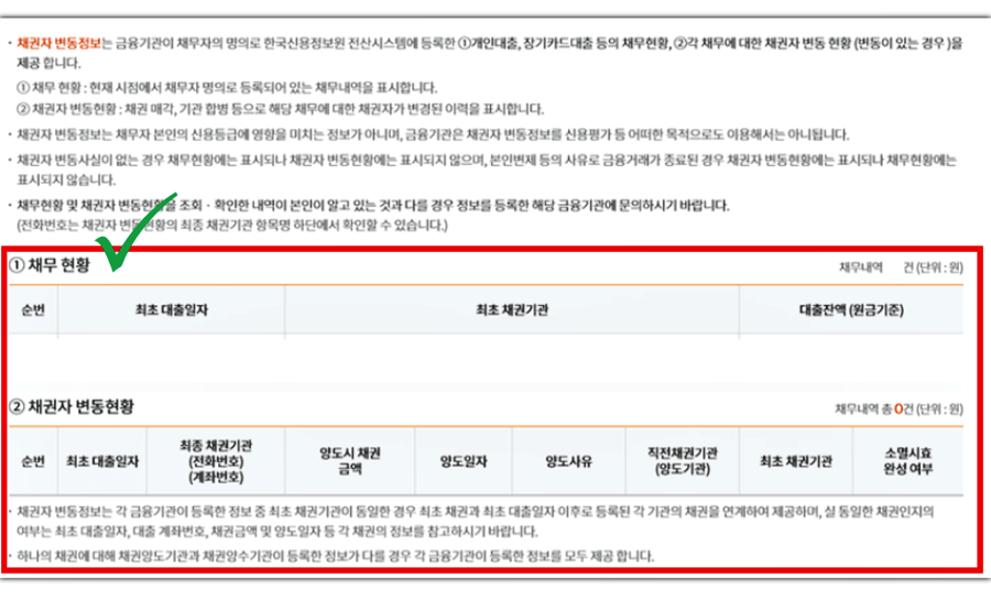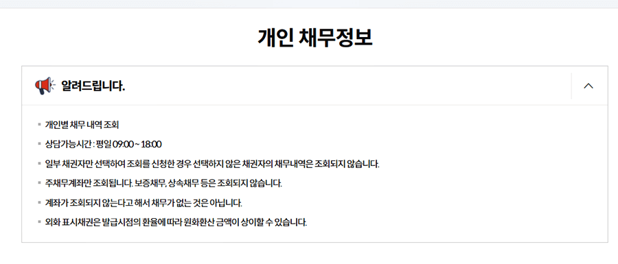 1. 한국신용정보원 개인채무 조회