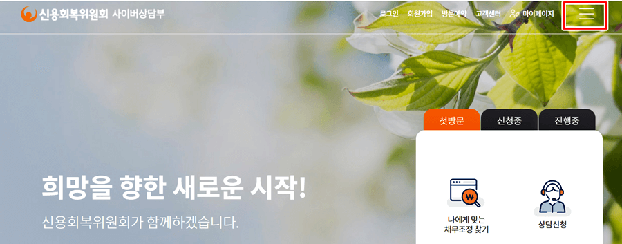 1. 신용회복위원회 홈페이지에 접속 후 공인인증서를 통해 로그인합니다.