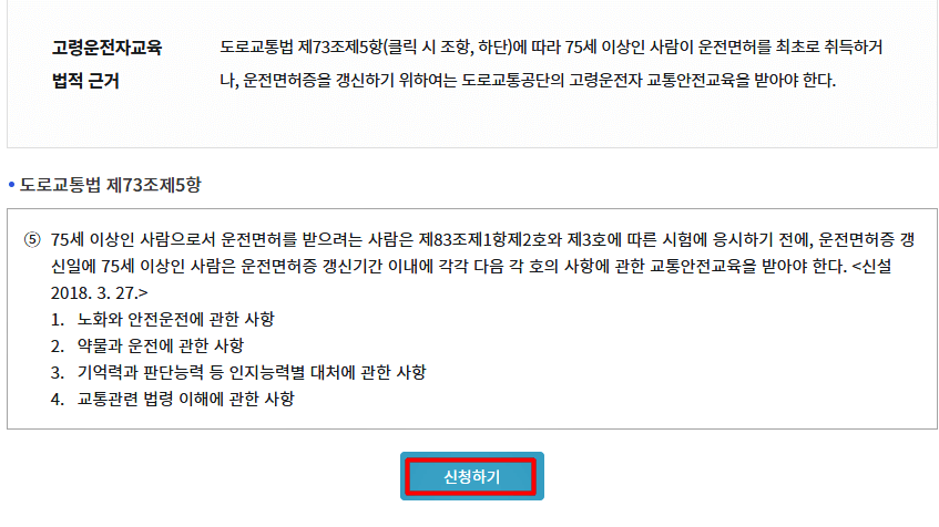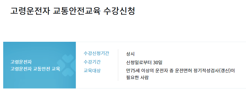 - 만 75세 이상 운전자를 대상으로 하는 교육(의무)