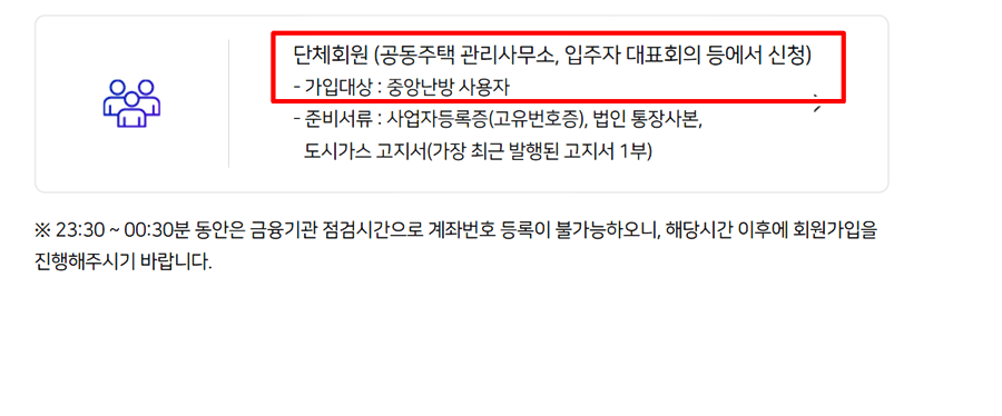 3. 주택난방/중앙난방 사용에 따라 개인 또는 단체를 선택합니다.