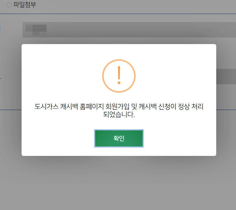 7. 도시가스 캐시백 홈페이지 회원가입 및 캐시백 신청이 완료되었습니다.