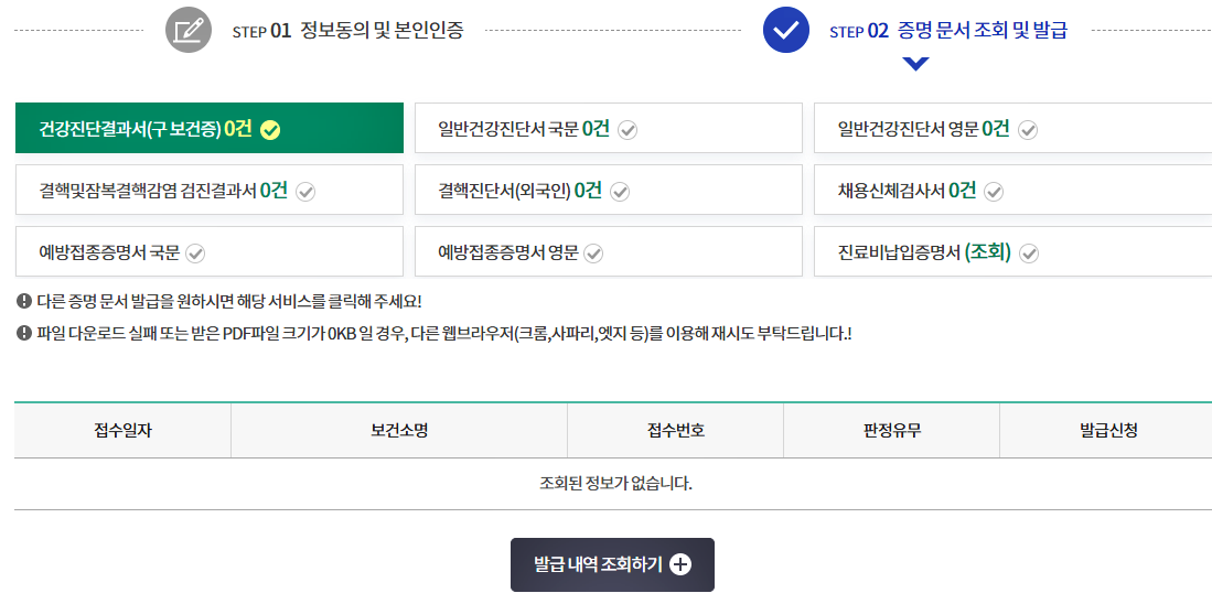 3.모든 약관에 동의 후 증명문서를 조회하고 발급받을 수 있습니다.