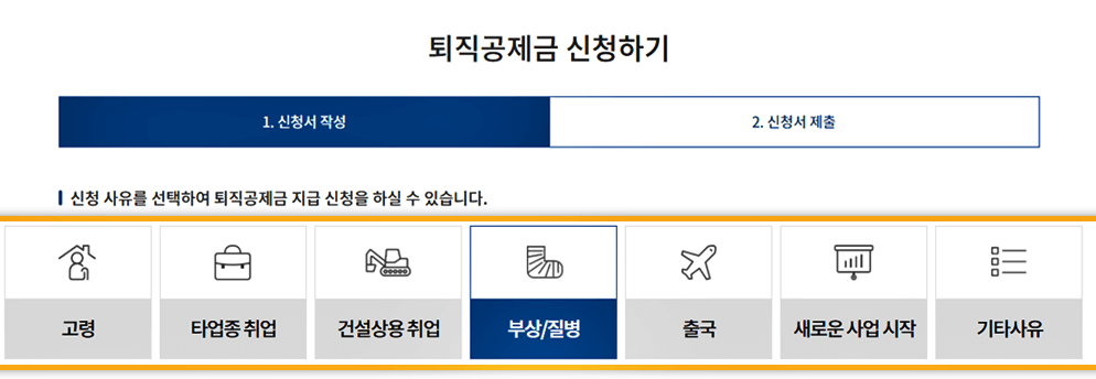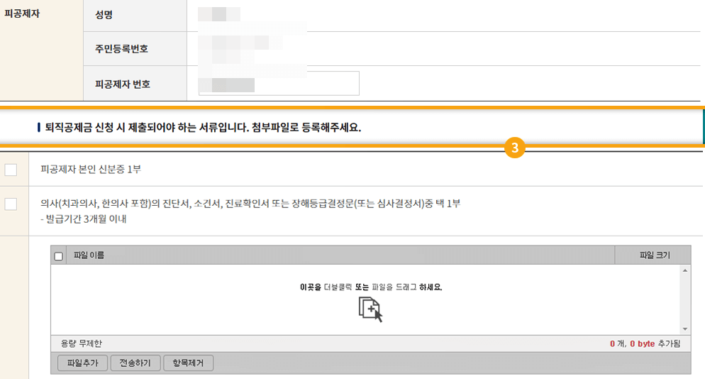 -구비서류:휴대폰 본인인증, 공동인증서, 카카오페이 본인인증, 퇴직사유별 구비서류 일체(스캔 또는 사진파일 첨부)
