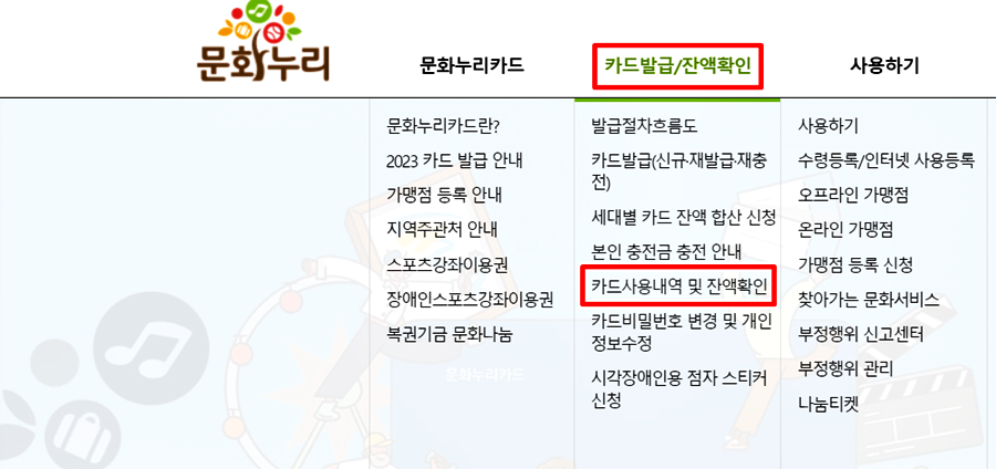 ② 잔액조회:NH농협카드 고객센터 1644-4000 →기프트카드(7번) →문화누리카드(5번) → 잔액조회(1번)