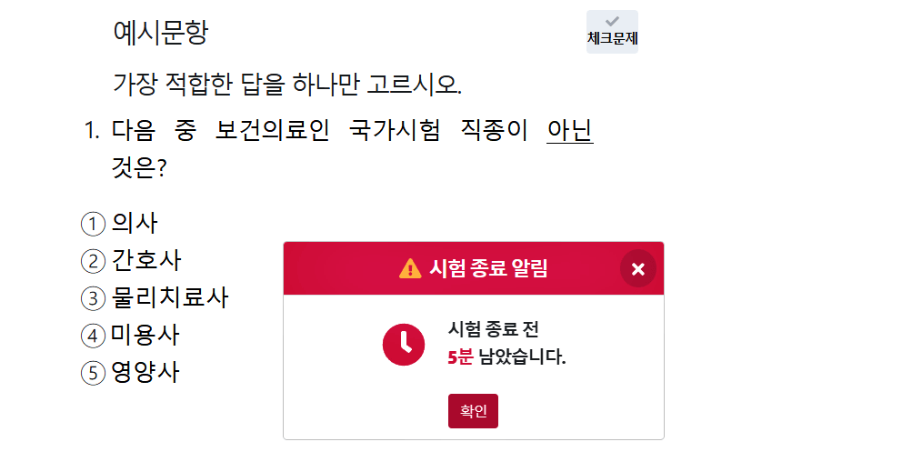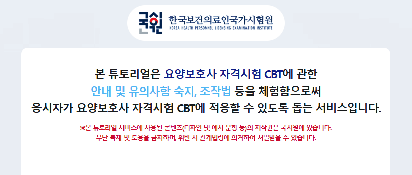 - 튜토리얼의 문제는 국시원에서 제공하는 예시문항으로 구성되었습니다.