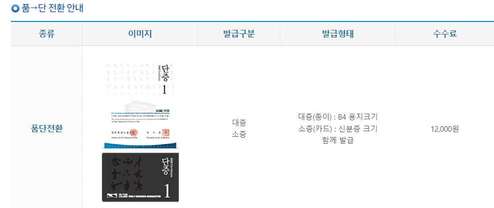 - 4품은 만 18세 이상, 4품→4단 전환보수 교육을 수료하여야 합니다.