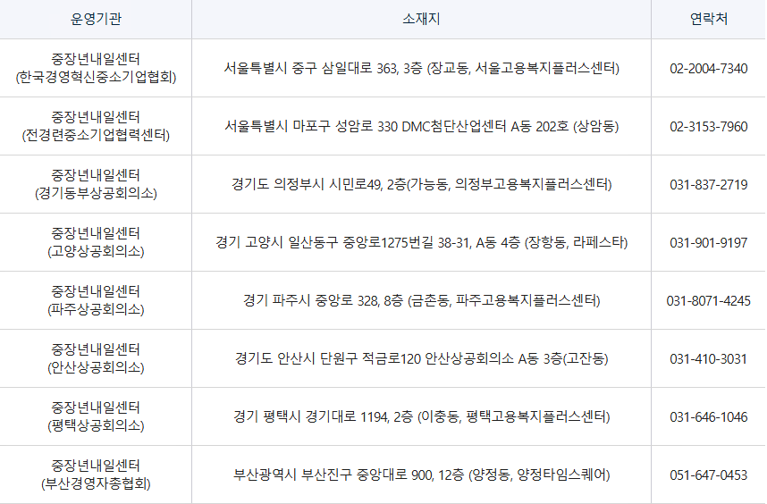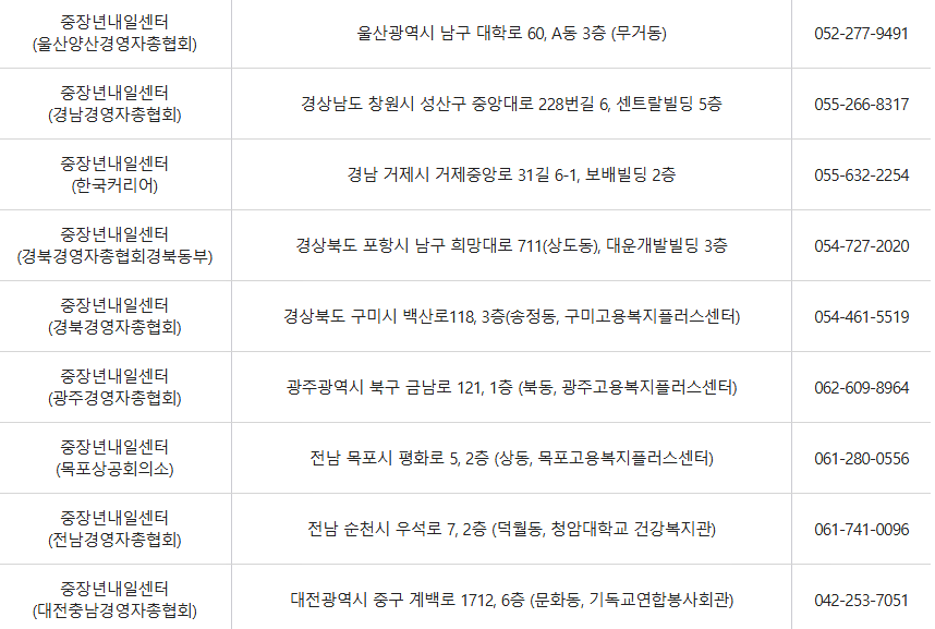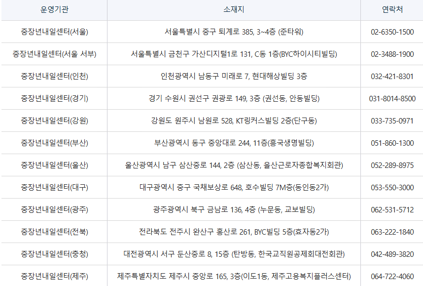 - 전국 31개 중장년내일센터 고용노동부 고객상담센터 문의( 국번 없이 1350)