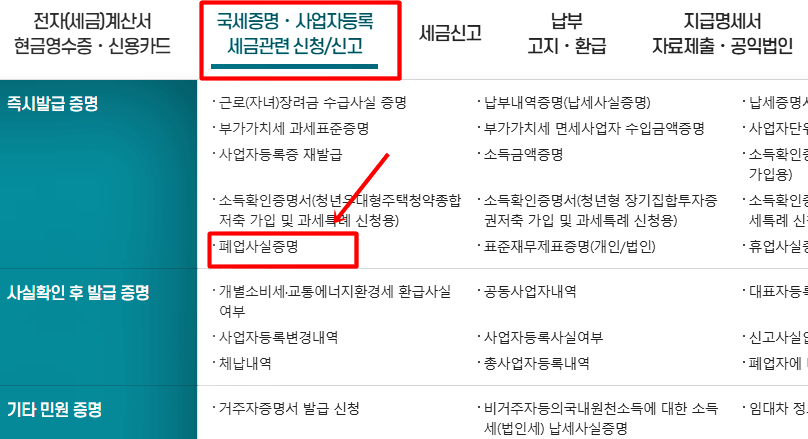 폐업사실증명원은 말 그대로 사업자를 폐업했다는 사실을 증명하는 문서이며, 폐업 후 국민연금 보험료 조정이나 폐업 소상공인에 관련한 지원금 신청 등 여러 상황에 필요로 할 수 있습니다. 이번 포스팅에선 폐업한 사업자라면 알아두어야 할 폐업사실증명원 발급 방법에 대해 알아보겠습니다.