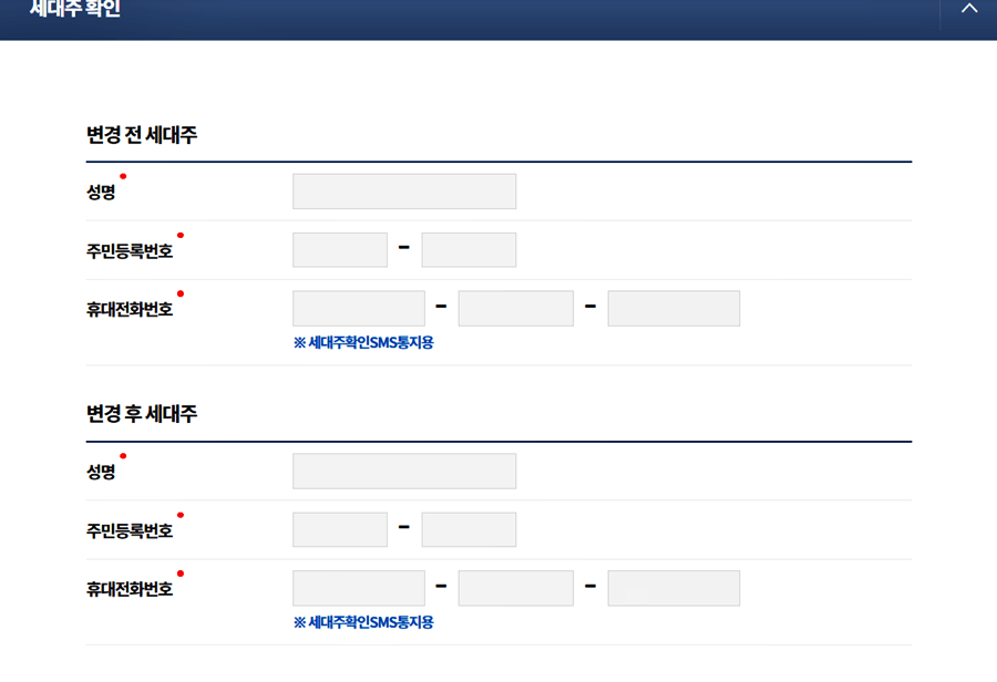 6. 세대주 확인 과정을 거친 후 민원신청하기 버튼을 클릭하면 신청이 완료됩니다.