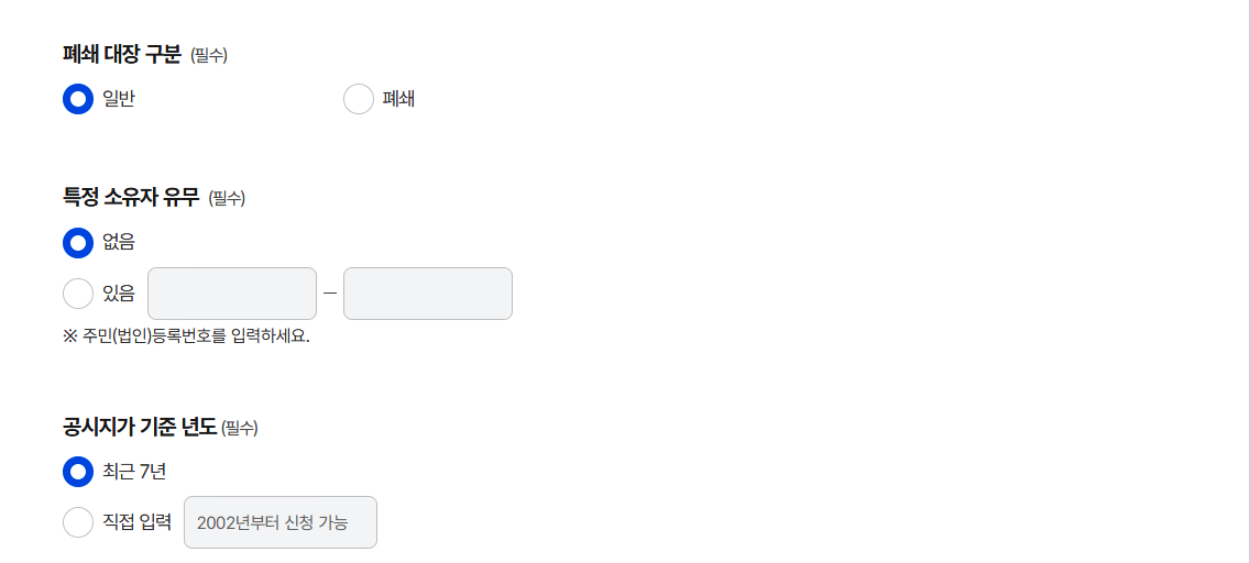 특정 소유자 : 공동 소유의 경우 특정 소유자만 포함될 때 선택