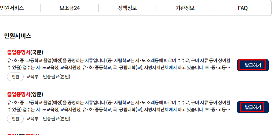 1. 고등학교 졸업증명서 발급