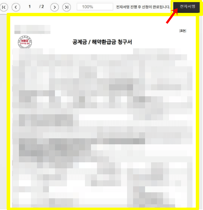 6. 공제, 해약금 청구서에 전자서명을 마치면 신청이 완료됩니다.