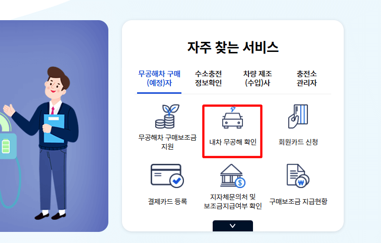 2. 자주 찾는 서비스에서 [내차 무공해 확인]을 클릭합니다.