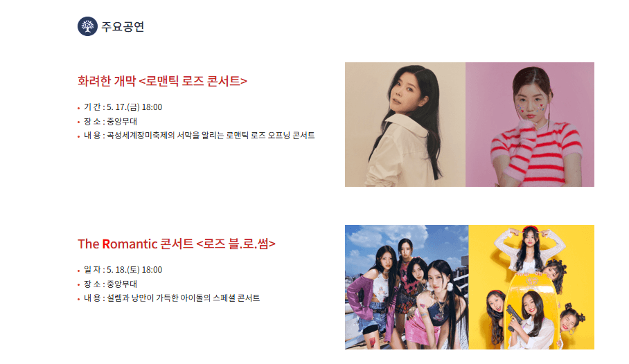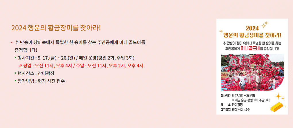 -아름다운 장미공원에서 다채로운 공연과 이벤트까지 즐겨 보시기 바랍니다.