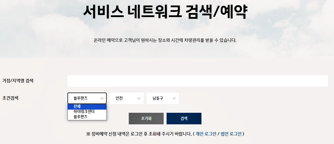 3. 전담 블루핸즈 지점을 등록했다면 해당 지점 예약이 가능합니다.