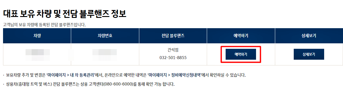 현대자동차 공식 홈페이지에서 가까운 블루핸즈 영업소를 선택하여 예약할 수 있습니다.