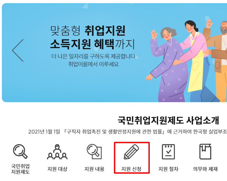 1. 국민취업지원제도 신청을 위해 홈페이지에 접속하여 회원가입 후 로그인합니다.