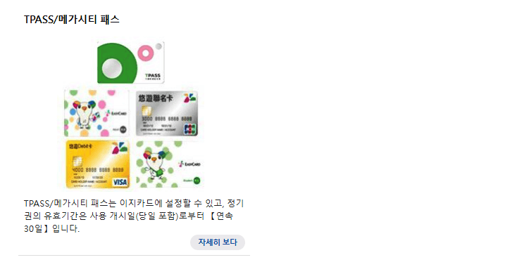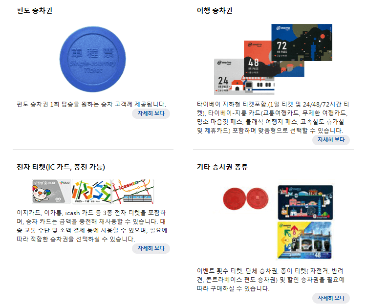 아래 페이지에서 승차권 별 사용방법, 구매방법, 사용기한 등 승차권 설명을 자세하게 확인할 수 있습니다.