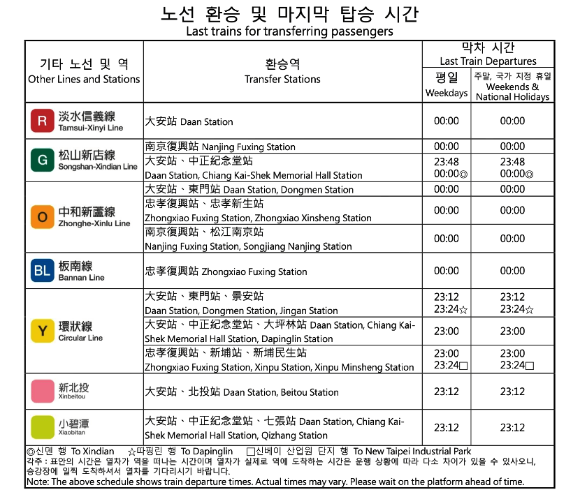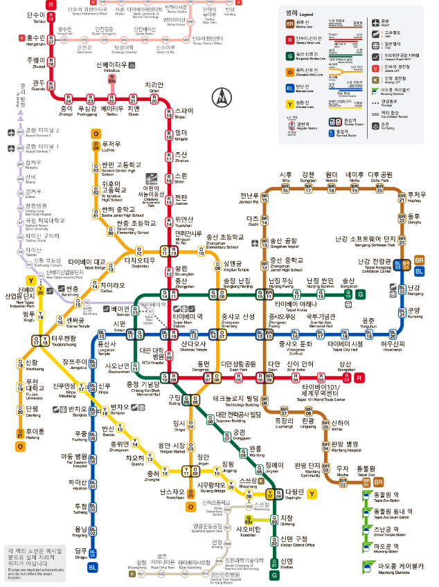 한글판 타이페이 지하철 노선도 - 타이페이 지하철(MRT)/공항철도 시간표와 요금, 최적 환승 경로를 검색해 보세요!