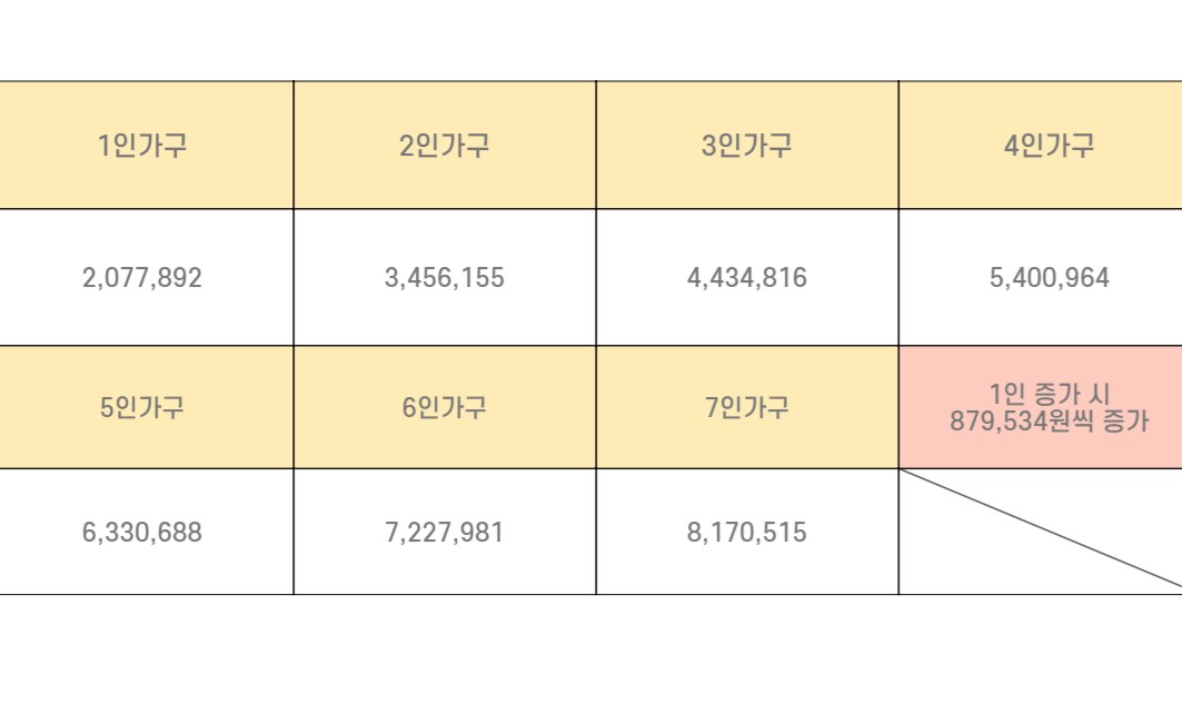 국민들의 소득을 나열했을 때 가장 중간에 오게 되는 값을 의미합니다. 중위소득이라 함은 100% 기준으로 본 소득을 얘기하며, 여기서 %를 계산해 해당 사항을 적용합니다.