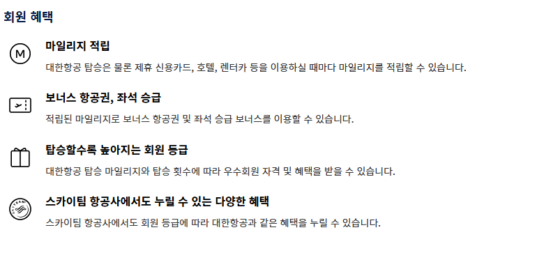 🎁탑승할수록 높아지는 회원등급:대한항공 탑승 횟수와 마일리지에 따라 회원등급이 높아지고 그에 따른 혜택을 받을 수 있습니다.