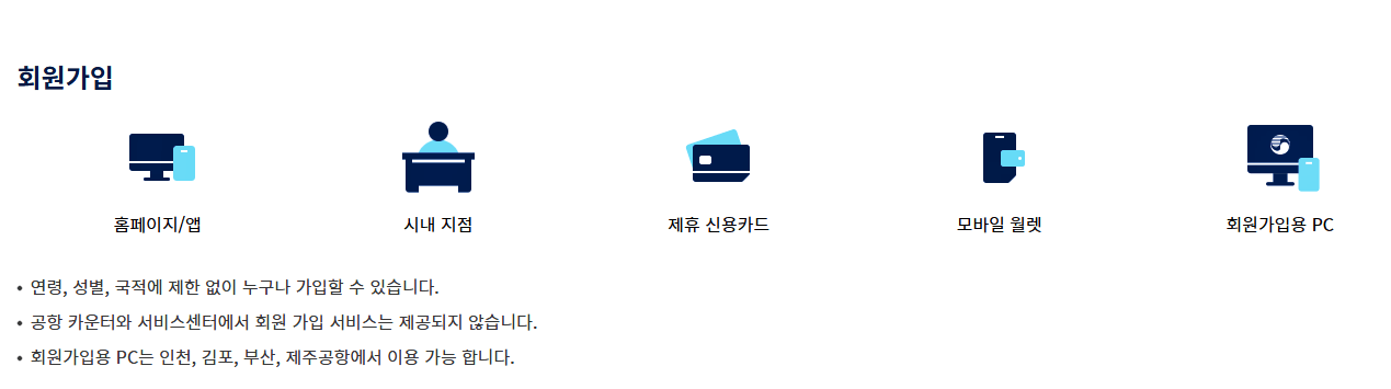 ✅공항 카운터와 서비스센터에서 회원 가입 서비스는 제공되지 않습니다.