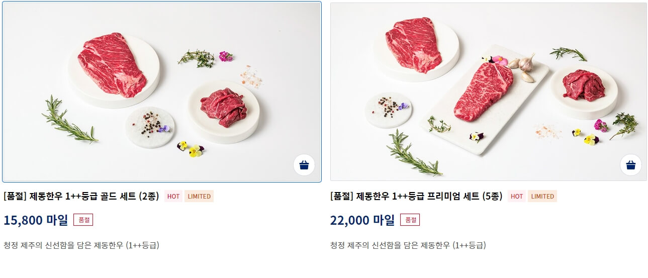 한국공항 제동한우, 제주퓨어워터 등 식음료를 마일리지로 구매할 수 있는 몰입니다.