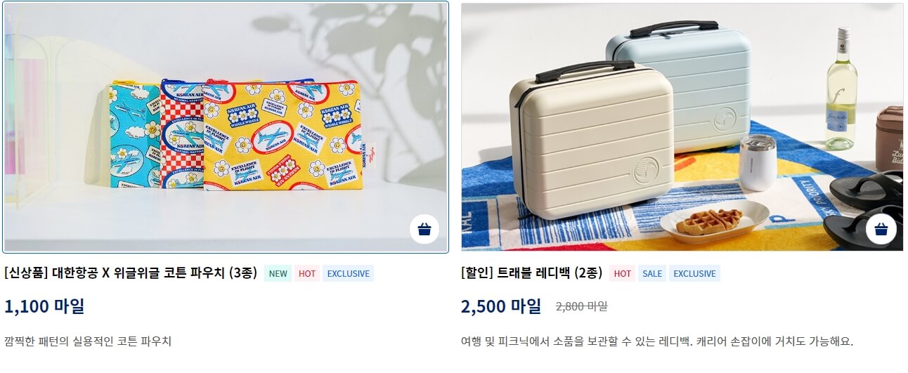 대한항공의 다양한 상품을 마일리지로 구매할 수 있으며, 라이프 스타일 브랜드와 콜라보 상품이 출시되고 있으니 다양한 상품들을 확인해 보시길 바랍니다.