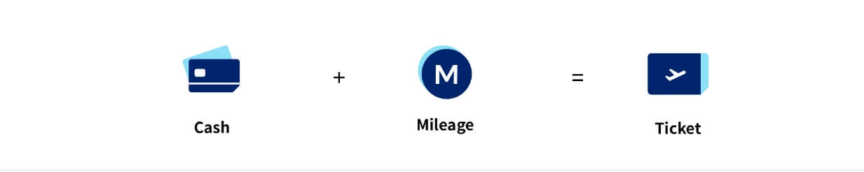 홈페이지 또는 모바일에서 항공권 구매 시 운임의 일부를 마일리지로 지불 가능합니다(복합결제)