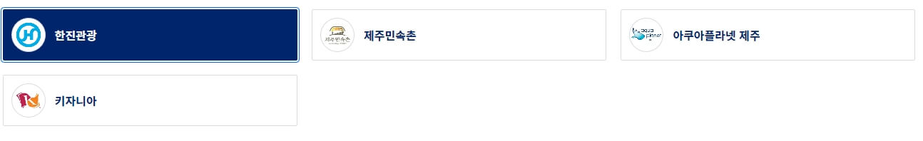 한진광광 패키지여행 상품이나 에어텔, 아쿠아플라넷 제주, 호캉스 상품, 제주 민속촌 입장권을 구입할 수 있습니다.