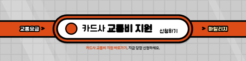 - 신청 시 카드사 정보를 잘못 입력하게 되면 마일리지 적립이 불가하며, 마일리지 지급 전 카드사 회원 탈퇴 시에도 마일리지가 지급되지 않을 수 있습니다.
