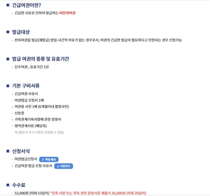 👉 한 국가에 오래 머무르는 장기 여행 중이라면 일반을 재발급 받아 사용할 수 있고, 귀국이 어려운 상황이거나 당장 여권이 필요한 경우라면 긴급 여권을 발급받는 것이 좋습니다.