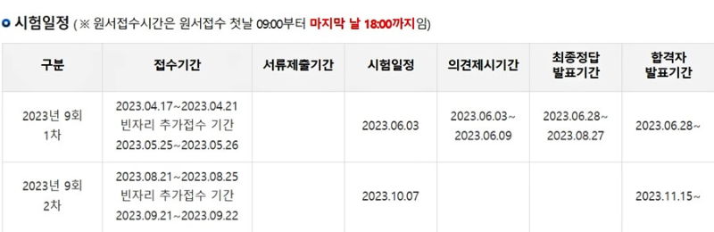 ● 합격 기준: 1차 각 과목 100점 만점 기준 각 과목 40점 이상,전 과목 60점 이상