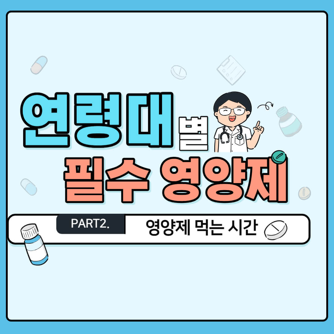 많은 사람들이 건강에 관심이 많아지면서 건강기능식품 시장은 점점 커지고 있습니다. 그만큼 많은 종류의 영양제들이 존재하기도 하고 쉽게 구매해서 복용할 수 있게 되었는데요. 아무래도 무작정 먹기보다는 자신의 나이대에 필요한 필수 영양제 종류와 올바른 복용 시간을 알고 먹는다면 더 좋은 효과를 볼 수 있을 것이라 생각됩니다. 건강관리를 위해 영양제 구입을 생각 중이라면 자신에게 필요한 제품은 무엇인지 알아보고 올바른 복용 시간도 숙지하여 좋은 효과 보실 바랍니다:)