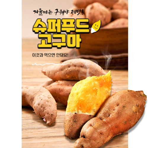 사랑받는 겨울 간식 그리고 다이어트,건강에도 도움을 줄 수 슈퍼푸드 고구마를 궁합이 좋은 김치, 동치미와 함께 더욱 맛있고 건강하게 즐기시기 바랍니다. 그리고 위장이 약한 사람이라면 우유와 함께 먹는 것을 피하고, 한 번에 1-2개 정도만 섭취하며 한꺼번에 많은 양을 빠르게 먹지 않도록 주의하시기 바랍니다.