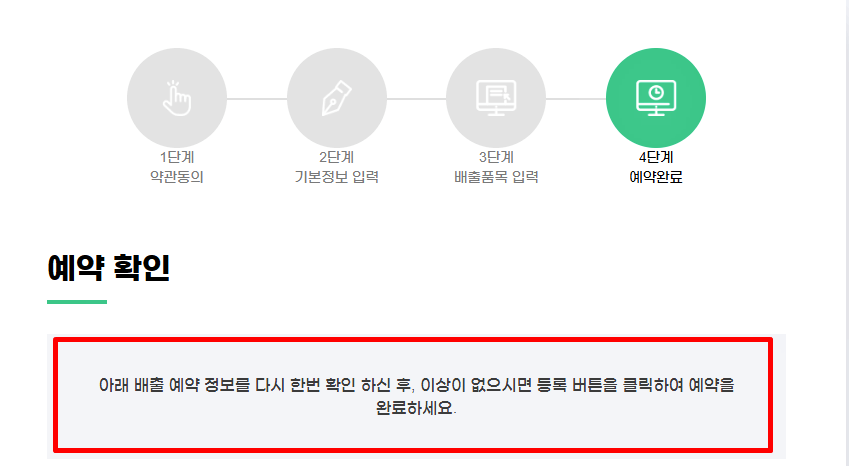 7. 예약확인 단계에서 배출품목을 다시 체크