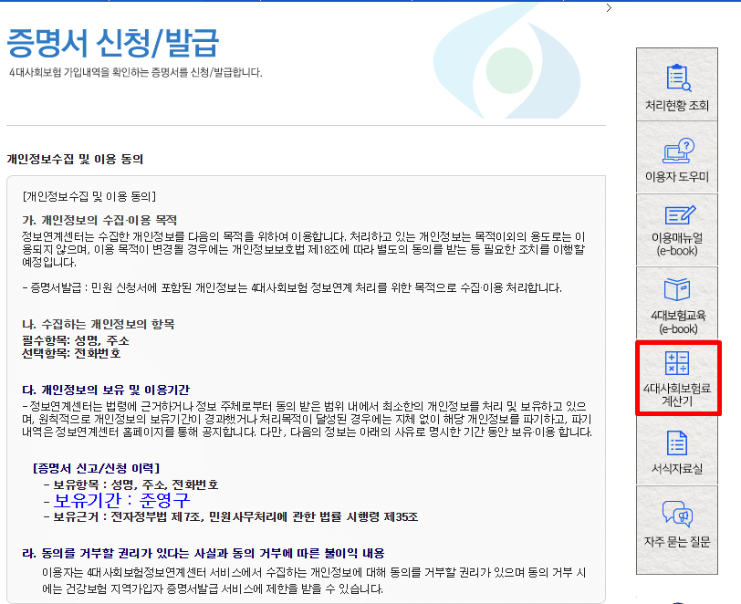 4대 사회보험은 사회보장제도의 일종으로 근로자라면 누구나 가입해야 하는 의무 보험입니다.특히 직장인이라면 매달 납부하게 되는데 기업에선 직원들을 대상으로 원천징수라는 이름으로 급여에서 세금을 미리 떼가는 방식을 택하고 있습니다.보험료를 납부하는 직장인들 입장에서는 내가 얼마만큼의 금액을 내고 있는지 정확히 알기 어려운 경우도 많은데요.위 사이트에서 가입내역서 발급은 물론 4대보험료를 간단하게 계산해볼 수 있습니다.
