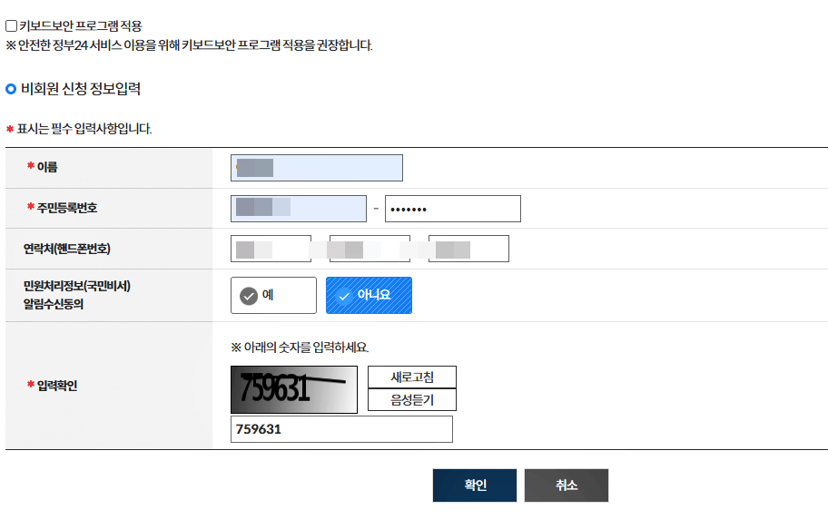 4. 회원 또는 비회원 신청으로 진행합니다. 비회원 진행 시 신청 정보 입력 후 진행.