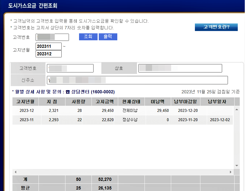 * 고객번호는 고지서 상단의 7자리 숫자를 입력합니다.(또는 모바일 고지서에 표기)