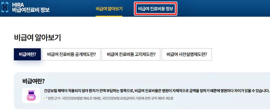 2.비급여 진료비용 정보를 클릭합니다.